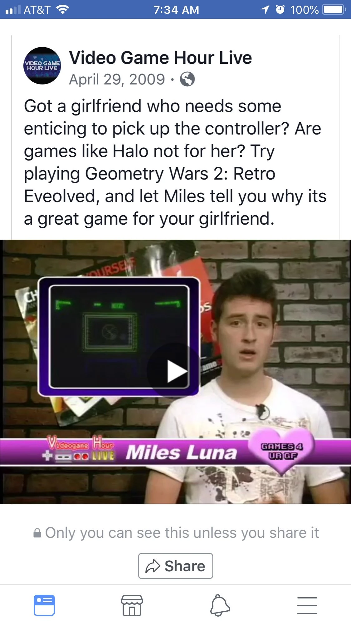 A Facebook Post from "Video Game Hour Live"